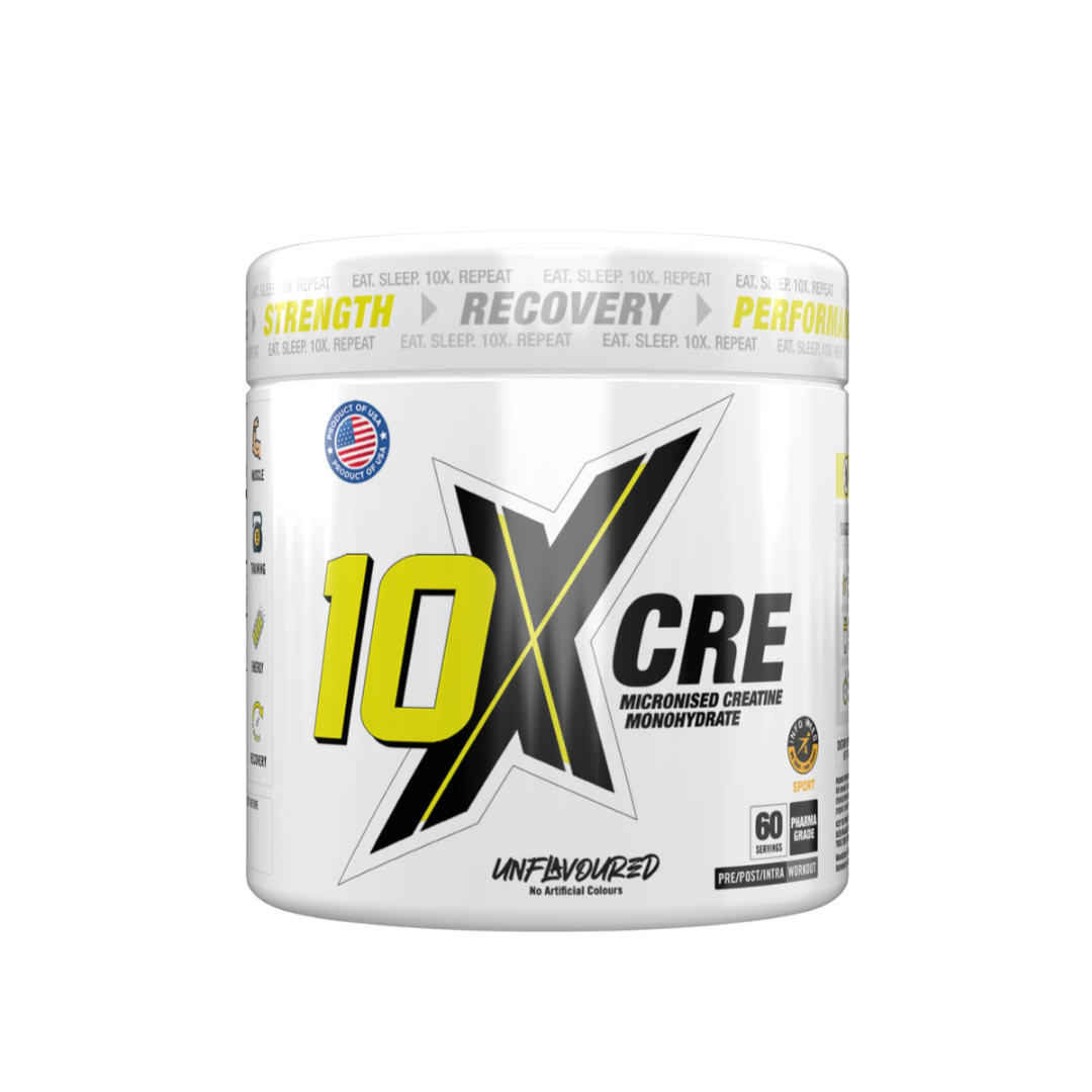 Fuel your workouts with 10X Athletic CRE 300g, designed to support enhanced strength and endurance. This premium creatine formula helps increase muscle power and recovery, enabling you to push harder and train longer. Perfect for athletes aiming to maximize performance and achieve their fitness goals faster.