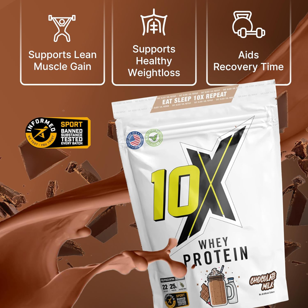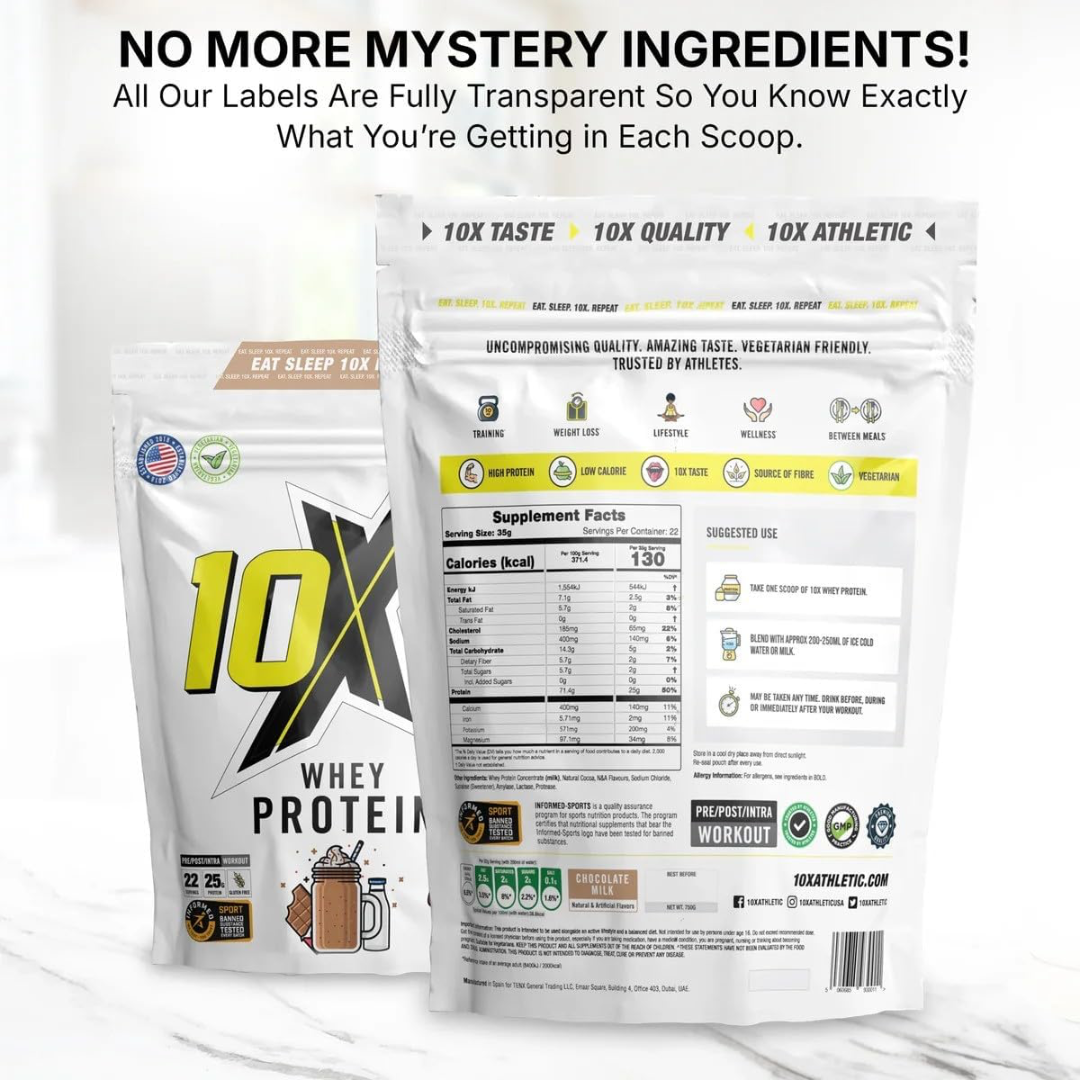 Fuel your workouts with 10X Athletic Whey Protein in rich Chocolate Milk flavor. Each 720g tub delivers high-quality protein to support muscle recovery and growth, helping you achieve your fitness goals faster. Enjoy a delicious, smooth shake that keeps you energized and satisfied throughout the day. Perfect for athletes and active lifestyles seeking effective nutrition in every scoop.