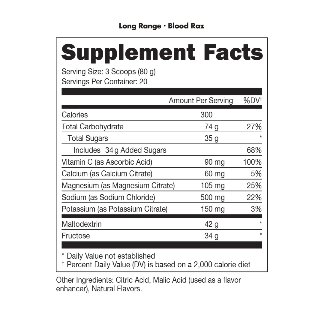 LONG RANGE is formulated to deliver the proper balance of hydration ingredients to allow endurance athletes to simultaneously rehydrate and push themselves during exercise.*