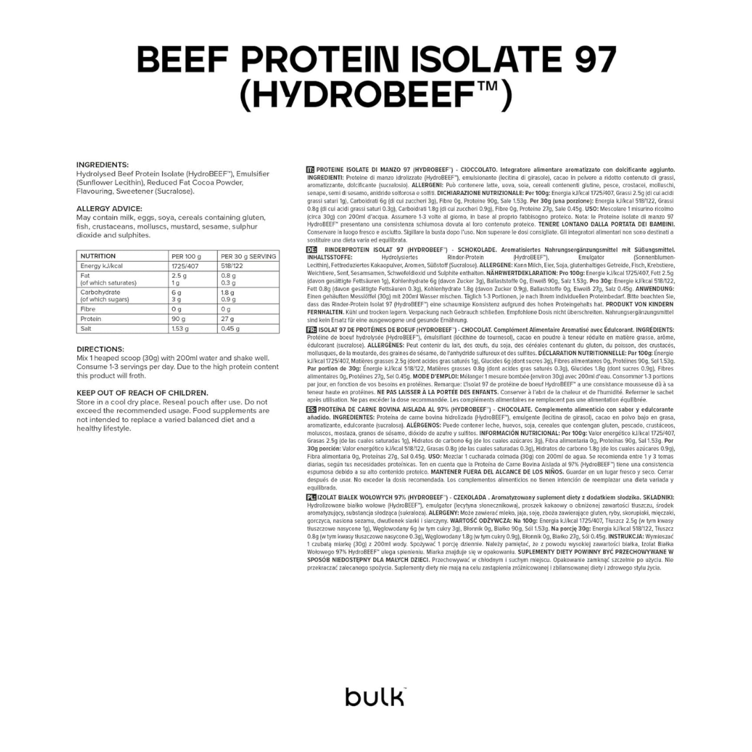 Bulk Beef Protein Isolate 97 (HydroBEEF) 1kg Chocolate