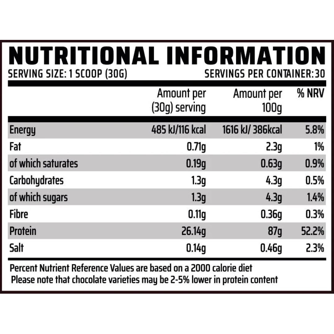 Chemical Warfare brings you Iso Strike 100% Whey Protein Isolate (900G - 30 Servings). A premium isolate packed with 26g of protein a serving, 1.3g of carbs and only 0.7g of fats. This product is perfect post workout when on a low carb diet and you are wanting to get a high level intake of protein. It can also be used to kick off the day or to be added to suit your nutritional requirements.