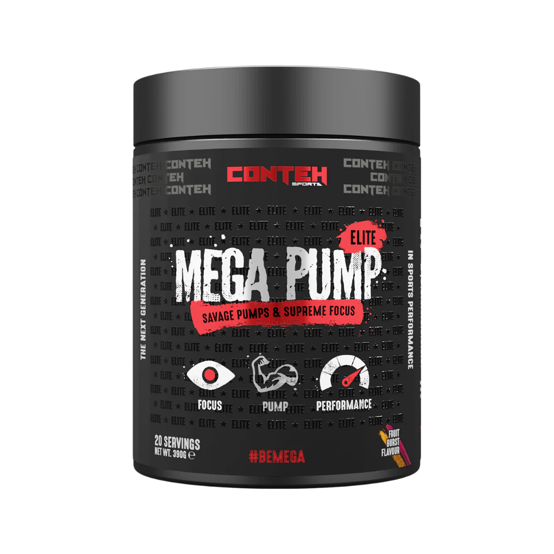 Conteh Sports Mega Pump is a comprehensive pre-workout formula designed to enhance blood flow and workout performance. This 400g Fruit Burst flavour combines key ingredients to support muscle pump, endurance, and nutrient delivery during intense training sessions. Ideal for athletes seeking improved vascularity and sustained energy throughout their workout. Mix with water and consume 20-30 minutes before exercise for optimal results.