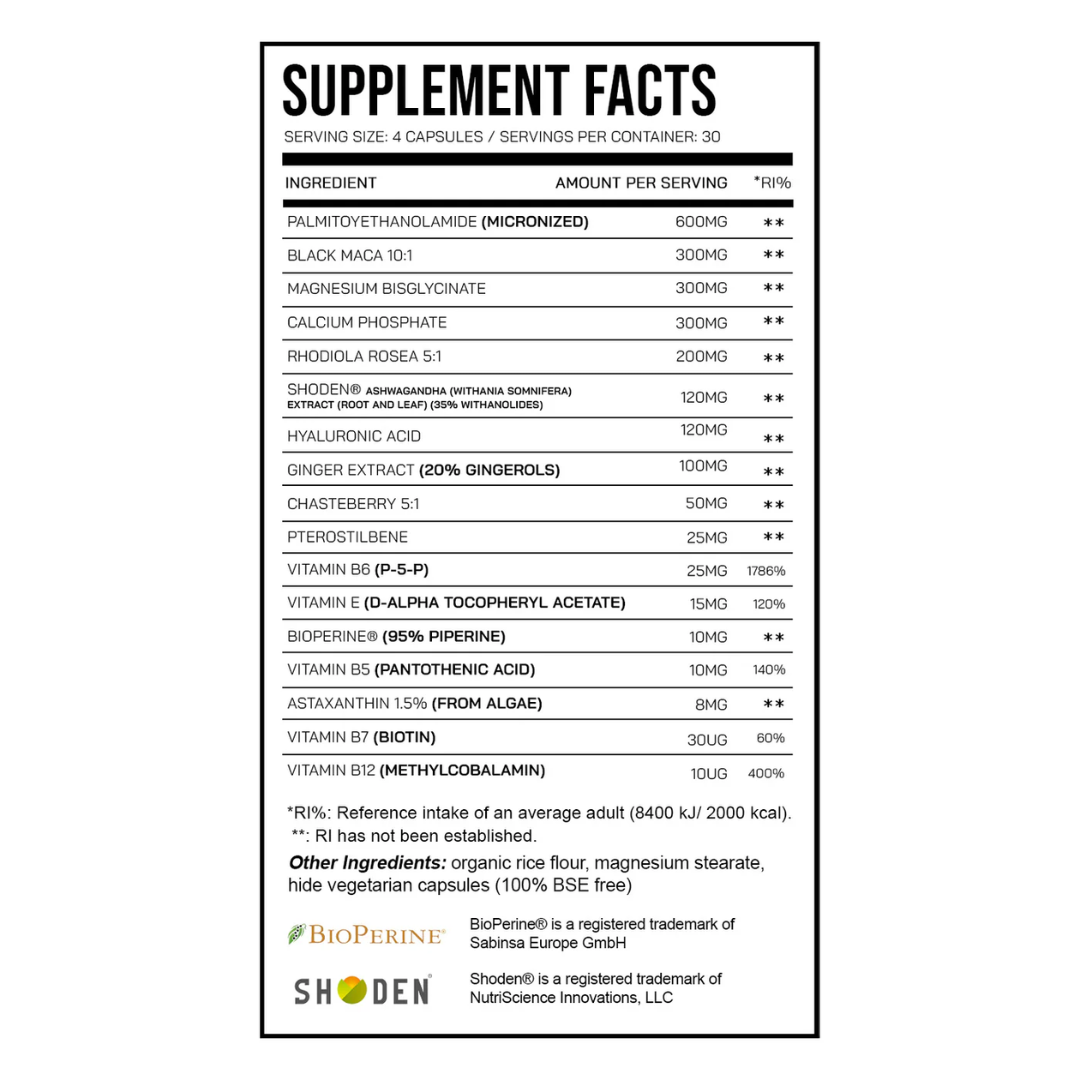This is our comprehensive female health support, containing 17 ingredients to support stress management, encourage sexual appetite and aid symptoms commonly associated with PMS.