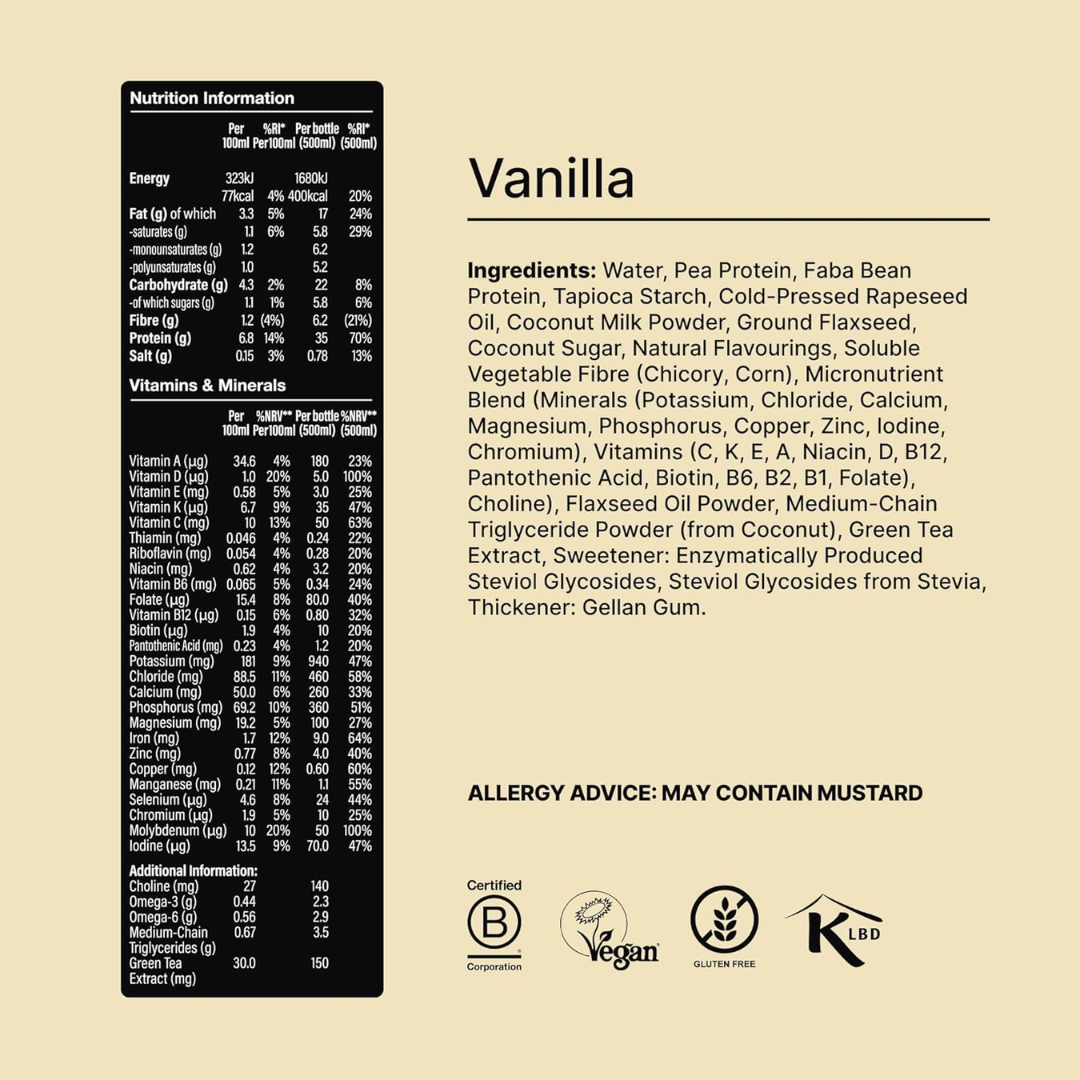Elite nutrition, bottled. Black Edition Ready-to-drink is our highest protein meal in a bottle, made to move with you. With 35g of plant-based protein, only 400 calories, and essential nutrients like vitamin D, fatty acids, calcium, and fibre, it's designed to fuel your full potential on the go.