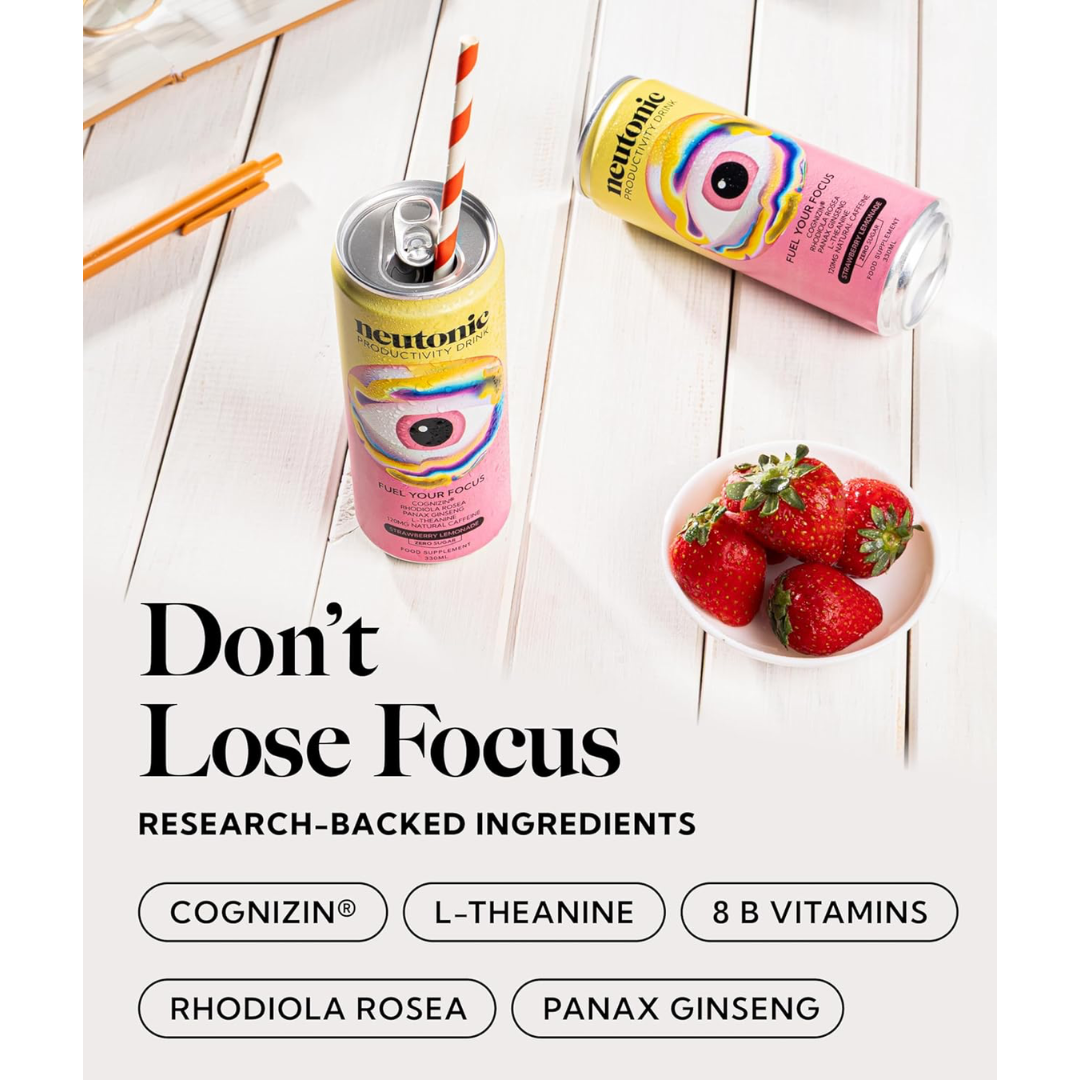 Neutonic 12x330ml Strawberry Lemonade is a refreshing nootropic energy drink designed to sharpen focus, boost performance and keep you energised throughout the day. With a crisp blend of sweet strawberry and zesty lemonade, this 12-pack delivers clean, sustained energy without the crash of traditional energy drinks, making it the smarter choice for work, training or study.
