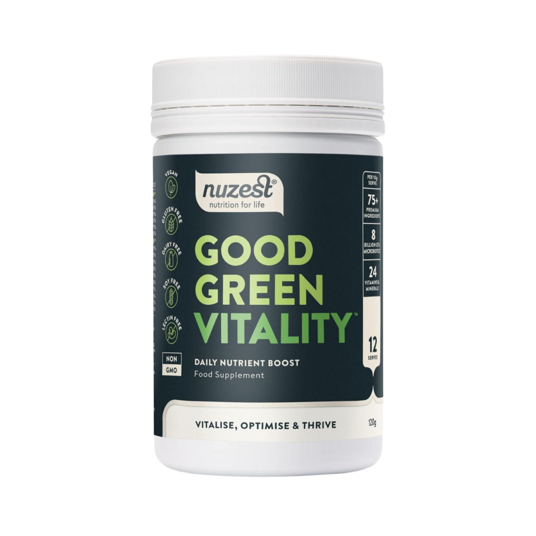 The 120g container of Nuzest Good Green Vitality is a compact, yet powerful option for those looking to add more plant-based nutrients into their diet. This blend of organic greens, fruits, and vegetables is designed to nourish your body from the inside out, boosting energy, immunity, and digestive health. With a clean, refreshing taste, it’s easy to incorporate into your daily routine—whether you mix it into smoothies, shakes, or just water.