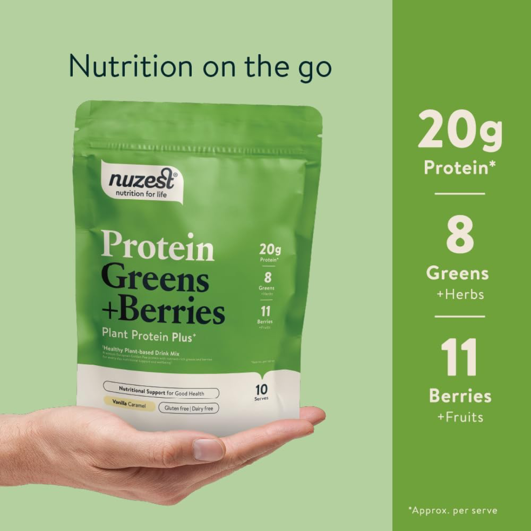 Nuzest Protein Plus Greens + Berries 300g - Vanilla Caramel