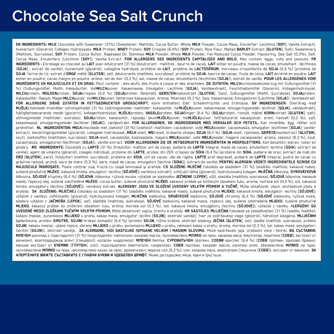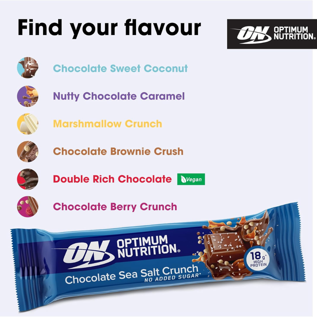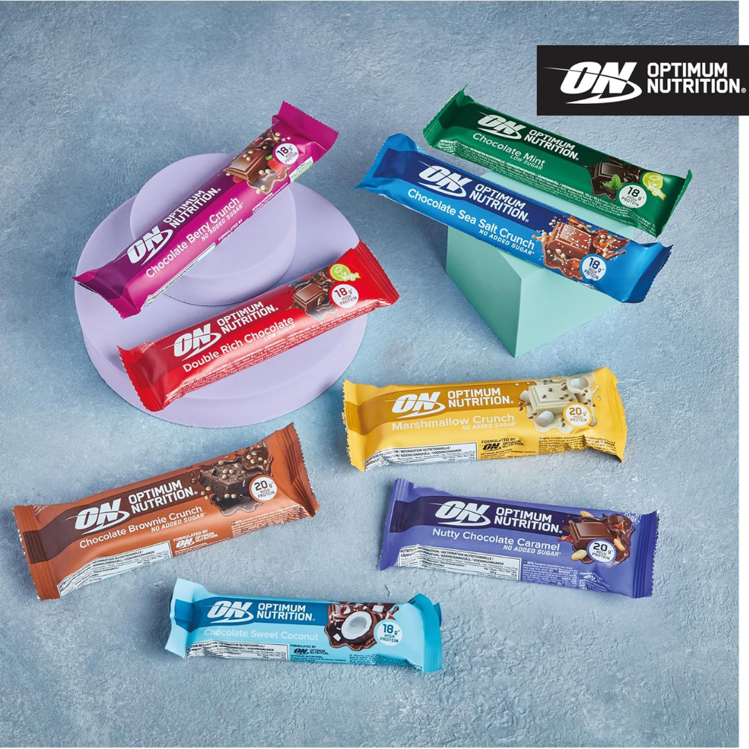 This box contains Optimum Nutrition Crunch Bars, offering the same delicious, crunchy texture and 30g of protein per bar. Perfect for snacking between meals or as a post-workout treat, these bars provide a high-protein, low-sugar option to support your fitness goals.