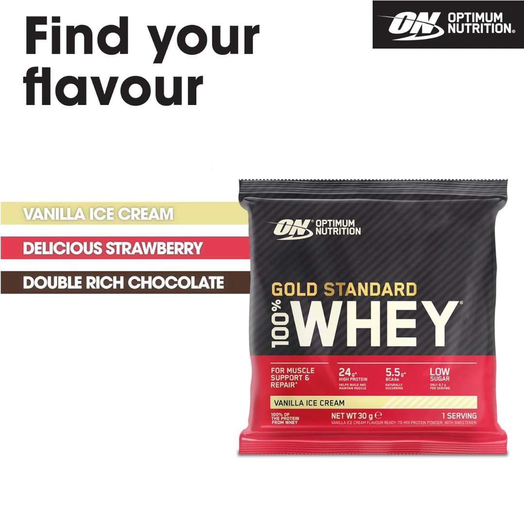 Optimum Nutrition Gold Standard Whey in single-serving packets provides 24g of high-quality protein per serving. Perfect for those on the go or looking for a convenient, portable option to stay on top of their protein needs.