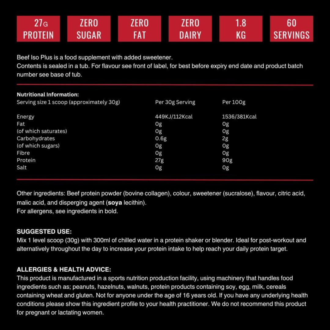 Outangled Beef Iso Plus is a high-quality protein supplement designed for athletes and fitness enthusiasts looking to increase lean muscle mass and accelerate recovery. Sourced from premium beef protein isolate, it provides a rich amino acid profile for maximum muscle growth and repair.