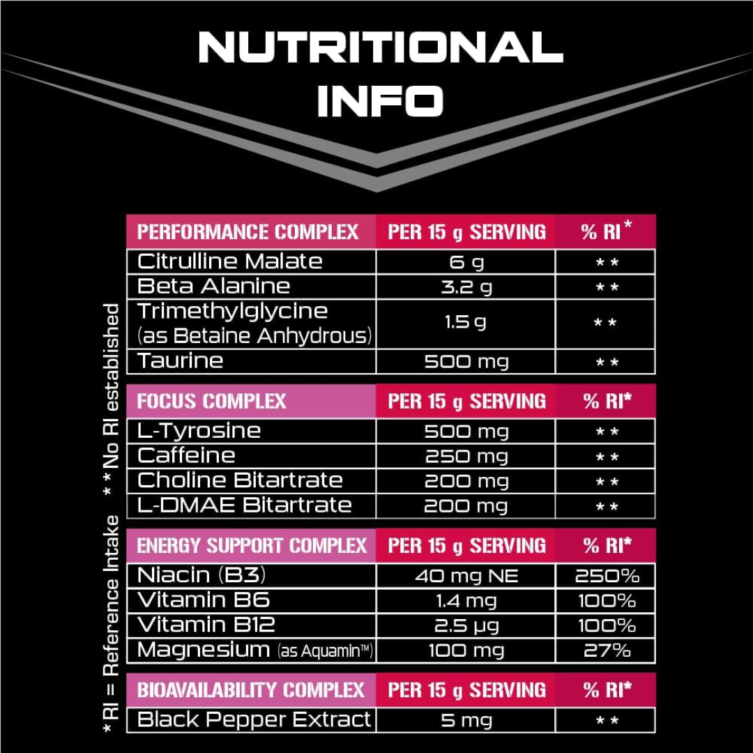 SCI-MX X-PLODE Pre-Workout delivers a comprehensive formula engineered to enhance training performance. This 300g watermelon-flavoured supplement combines key ingredients designed to support energy, focus, and endurance during intense workouts. The blend targets multiple performance markers, helping you maximise intensity and training output. Ideal for athletes seeking a multi-faceted pre-workout solution to elevate their gym sessions.
