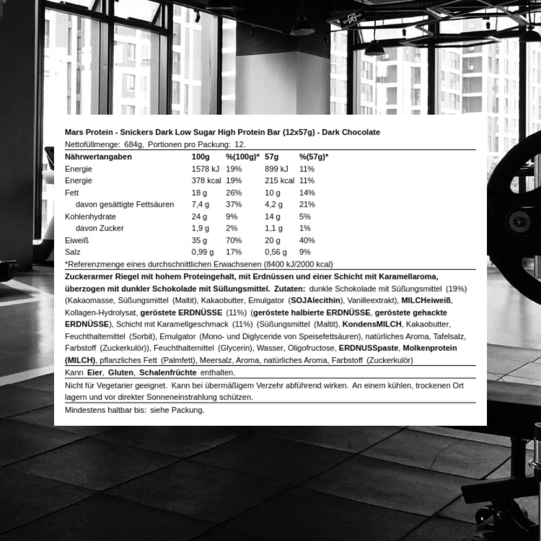 Indulge guilt-free with Snickers Low Sugar High Protein Dark Chocolate Bars. Each 57g bar delivers satisfying chocolate, caramel, peanuts, and nougat with significantly reduced sugar content, making it an ideal choice for those managing their carbohydrate intake. Packed with high protein to support muscle recovery and sustained energy, these bars work perfectly as post-workout nutrition or a convenient snack throughout your day. The dark chocolate coating adds a sophisticated edge to the classic Snickers flavour profile. This 12-bar box ensures you always have a nutritious treat on hand.
