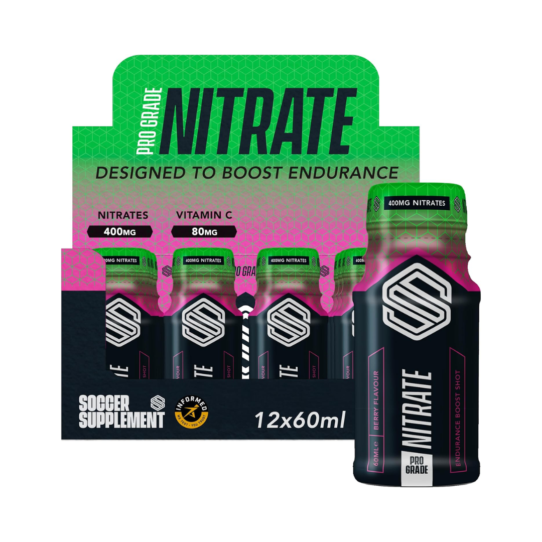 Soccer Supplement Nitrate Shot delivers concentrated nitrate support in convenient 60ml servings, designed for athletes seeking enhanced performance. This mixed berry formula provides a palatable way to incorporate nitrates into your pre-activity routine. Each box contains 12 shots for consistent supplementation throughout your training cycle. Nitrates are recognised for their role in supporting cardiovascular function and oxygen utilisation during intense physical exertion. The ready-to-drink format eliminates preparation time, making it ideal for busy athletes. Mixed berry flavour offers a refreshing taste without artificial complexity.