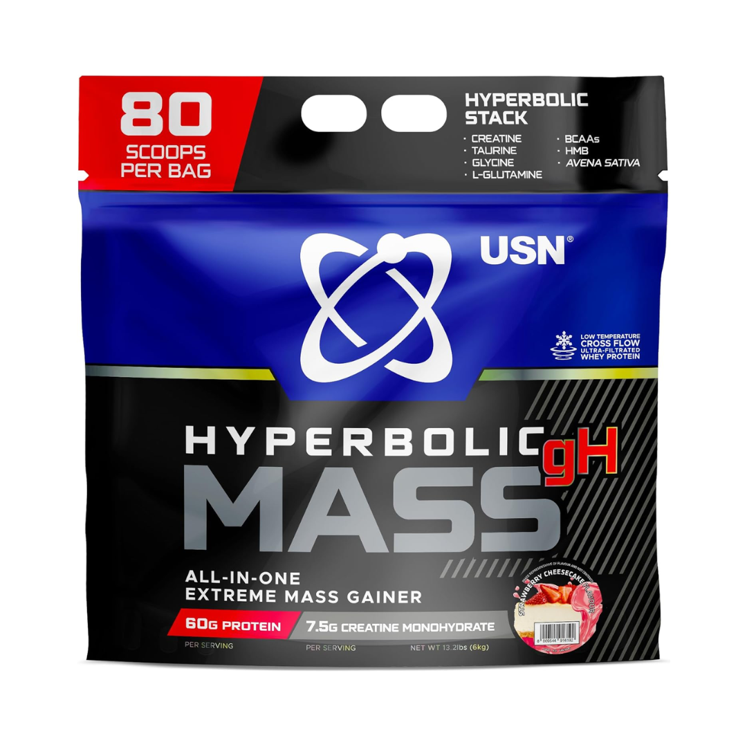 USN Hyperbolic Mass 6kg is a high-calorie, nutrient-dense weight gainer designed to help individuals gain muscle mass and support overall strength and power. This mass gainer is packed with a blend of high-quality protein, complex carbohydrates, and healthy fats, ensuring that you get the necessary calories and nutrients to fuel your workouts and muscle recovery. Each serving provides a substantial amount of protein and carbs, which help support muscle growth and recovery, making it ideal for individuals who struggle to gain weight or are looking to bulk up. USN Hyperbolic Mass also contains added vitamins and minerals to support overall health and well-being.