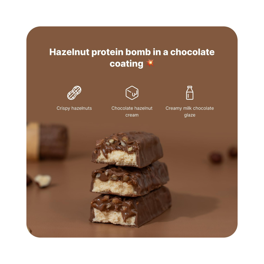 Indulge in the rich, creamy taste of Vilgain Double Trouble Protein Bars with Hazelnut Cream. Each 55g bar delivers a satisfying blend of high-quality protein and delicious hazelnut flavor, perfect for fueling your day or aiding recovery after workouts. Conveniently packed in a box of 12, these bars offer a tasty, nutritious snack to keep you energized anytime, anywhere. Treat yourself to a protein boost that doesn’t compromise on flavor.