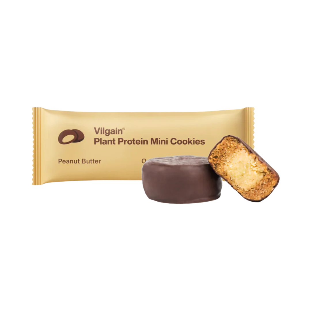 Vilgain Organic Plant Protein Mini Cookies in Peanut Butter offer a convenient, protein-rich snack made from organic plant-based ingredients. Each 50g mini pack delivers a balanced blend of nutrients, supporting muscle recovery and sustained energy. Perfect for on-the-go nutrition, these cookies combine the rich taste of peanut butter with clean, natural components, making them an excellent choice for health-conscious individuals seeking a tasty yet functional treat.