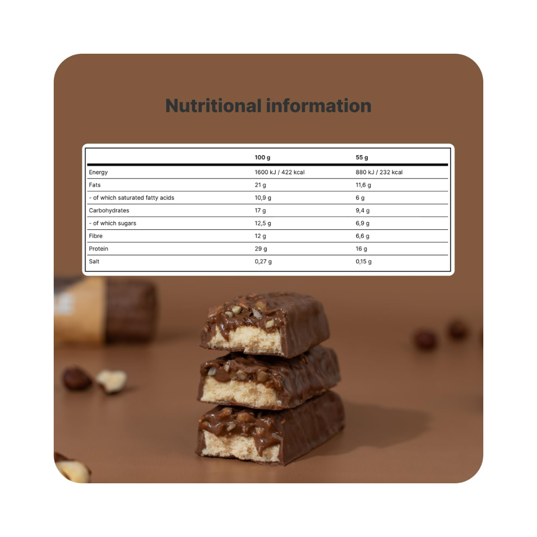 Indulge in rich chocolate flavor layered with crispy wafer pieces, all nestled inside a high‑protein bar offering 20 g of premium protein per serving. Made with real ingredients and no artificial sweeteners or fillers, it delivers crunch, creaminess and chocolate satisfaction in every bite. Gluten-free and low in sugar, this bar is perfect for post-workout recovery, healthy snacking, or anytime your dessert‑style cravings strike.