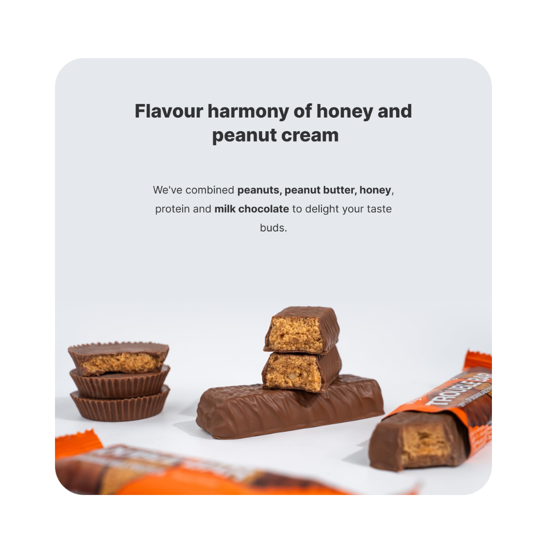 A deliciously soft protein bar made with real peanut butter and honey, delivering 20g of protein per bar with no artificial sweeteners or fillers. Packed with whole-food ingredients for natural energy, this bar is perfect for on-the-go snacking, post-workout fuel, or a clean treat anytime. Gluten-free, high-protein, and naturally tasty.