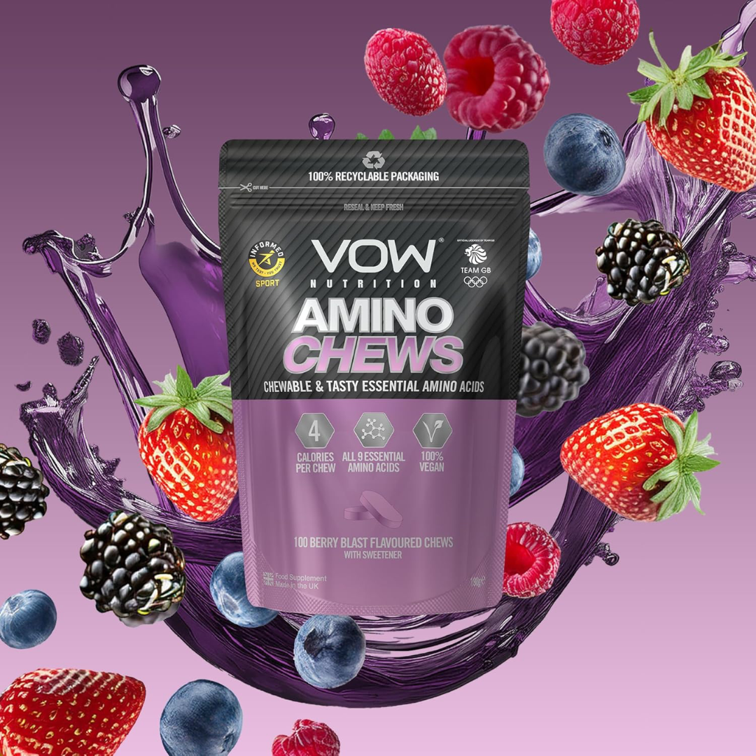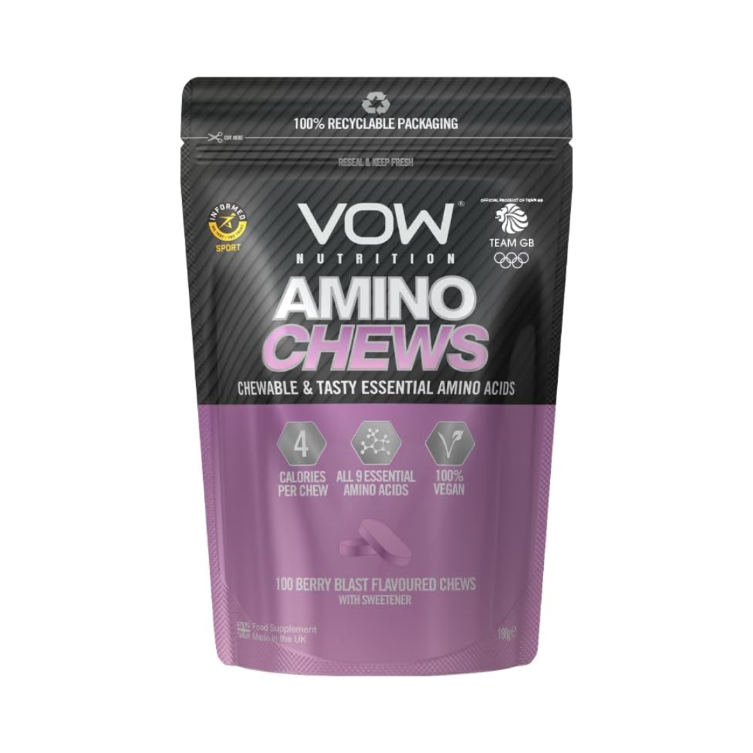VOW Nutrition Amino Chews in Berry Blast offer a convenient way to support muscle recovery and performance. Each chew delivers essential amino acids that help promote protein synthesis and reduce muscle fatigue. Perfect for on-the-go supplementation, these tasty chews provide a practical alternative to traditional powders or capsules, making it easier to maintain your amino acid intake throughout the day. Ideal for athletes and fitness enthusiasts seeking effective recovery support without compromising on flavor or convenience.