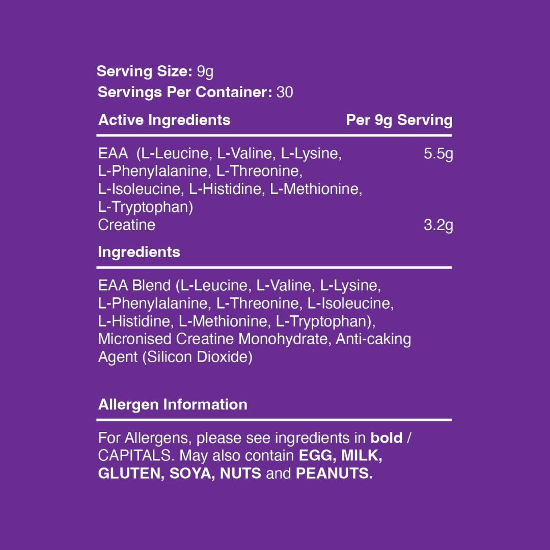 Warrior Creatine Plus EAA in Mixed Berry combines high-quality creatine with essential amino acids to support muscle strength, endurance, and recovery. This 270g formula is designed for athletes seeking to enhance performance and promote lean muscle growth. The mixed berry flavor offers a refreshing taste, making it easy to incorporate into your training regimen. Ideal for pre- or post-workout use, it helps optimize muscle energy and repair for improved workout results.