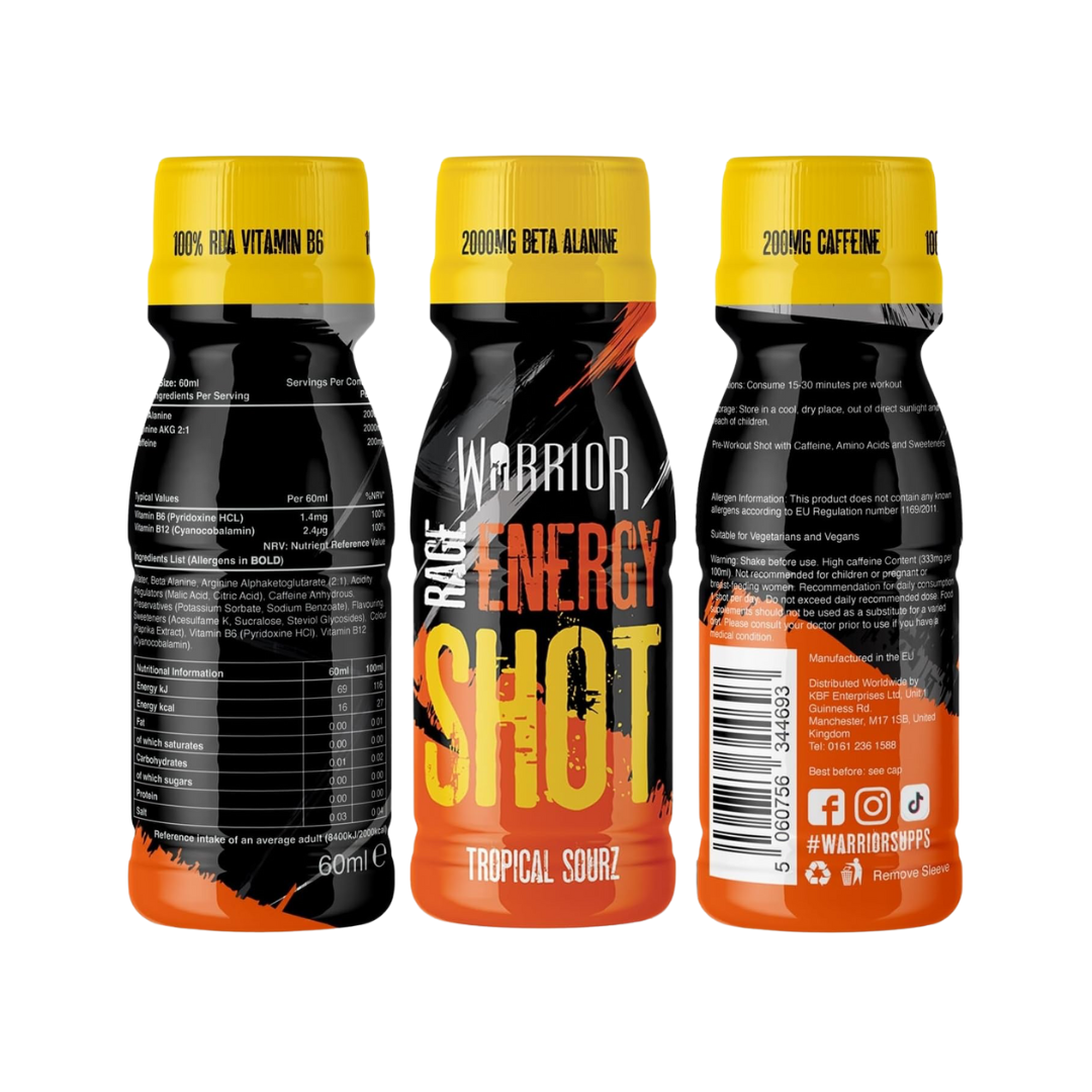 Warrior RAGE Energy Shots are a convenient, on-the-go energy boost that helps you stay focused and energized throughout the day or during intense workouts. Each shot is packed with a potent blend of caffeine, B-vitamins, and amino acids, designed to increase energy, mental focus, and performance. Whether you're looking for a quick pick-me-up before a workout or need an energy boost to power through your day, Warrior RAGE Energy Shots offer a powerful and effective solution. With 12 shots in each pack, these convenient little bottles are perfect for those who need fast, reliable energy whenever they need it.