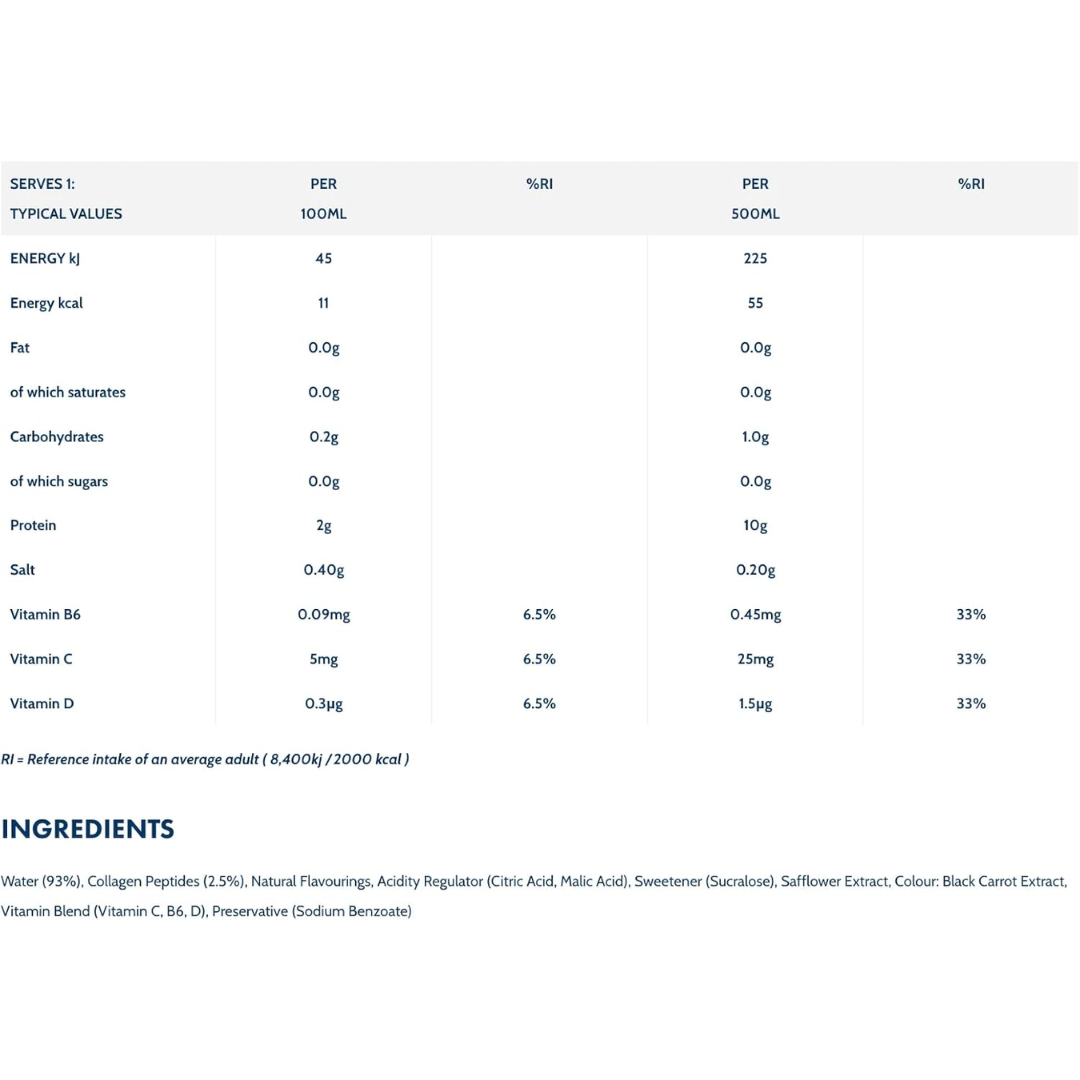 Wow Hydrate’s Tropical Protein Water is a refreshing, sugar-free beverage designed to support hydration and muscle recovery. Each 500ml bottle delivers 10g of collagen protein, 50 calories, and is fortified with essential vitamins B6, C, and D, along with BCAAs (Leucine, Isoleucine, and Valine) . This drink is ideal for those seeking a convenient, on-the-go source of protein without added sugars or fats.