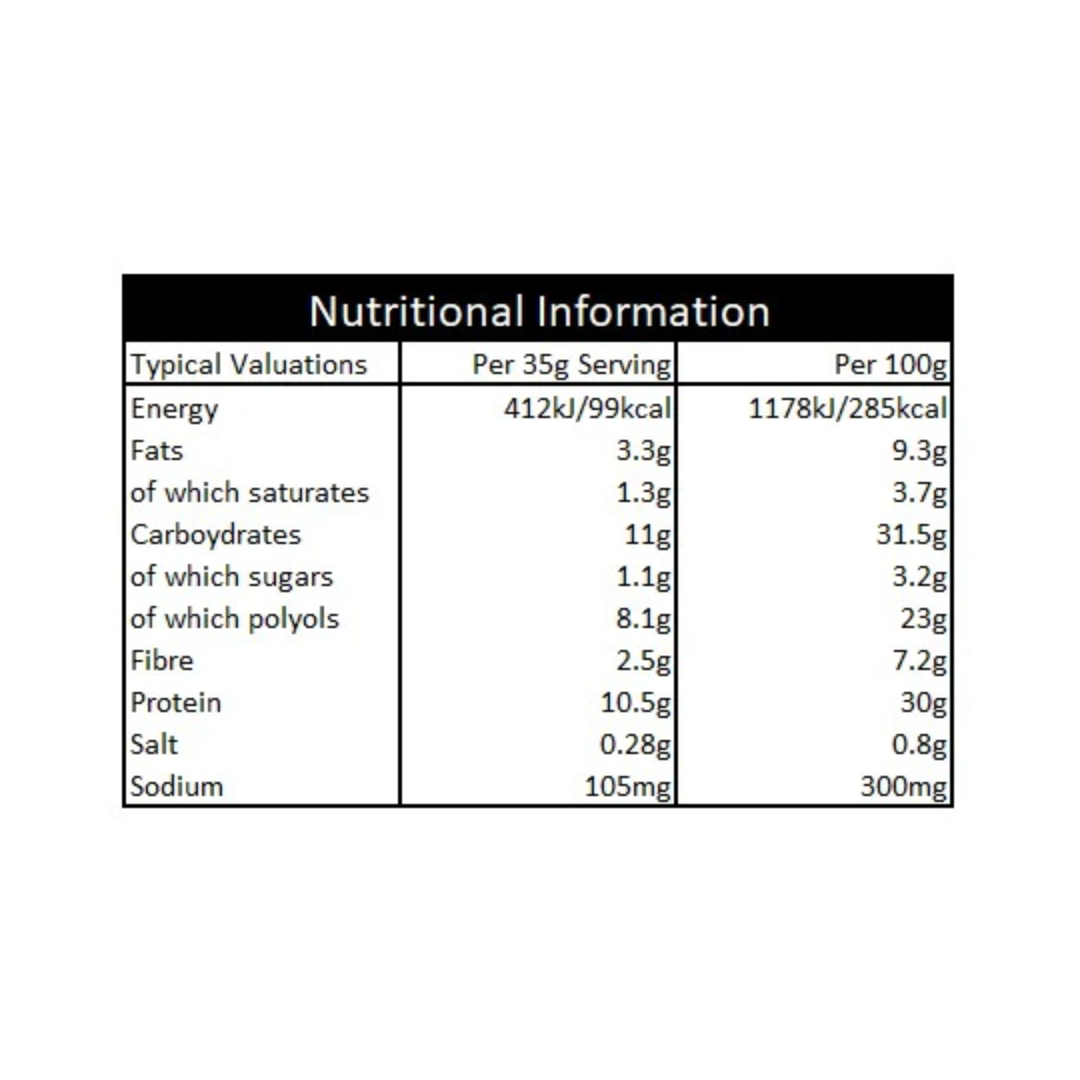 A soft, plant-based protein bar layer of gooey caramel and coated in vegan white chocolate. Each 35 g bar packs 10.5 g of protein, just 99 kcal, and only 0.3 g of sugar, making it a tasty, gluten‑ and dairy‑free, guilt‑free snack