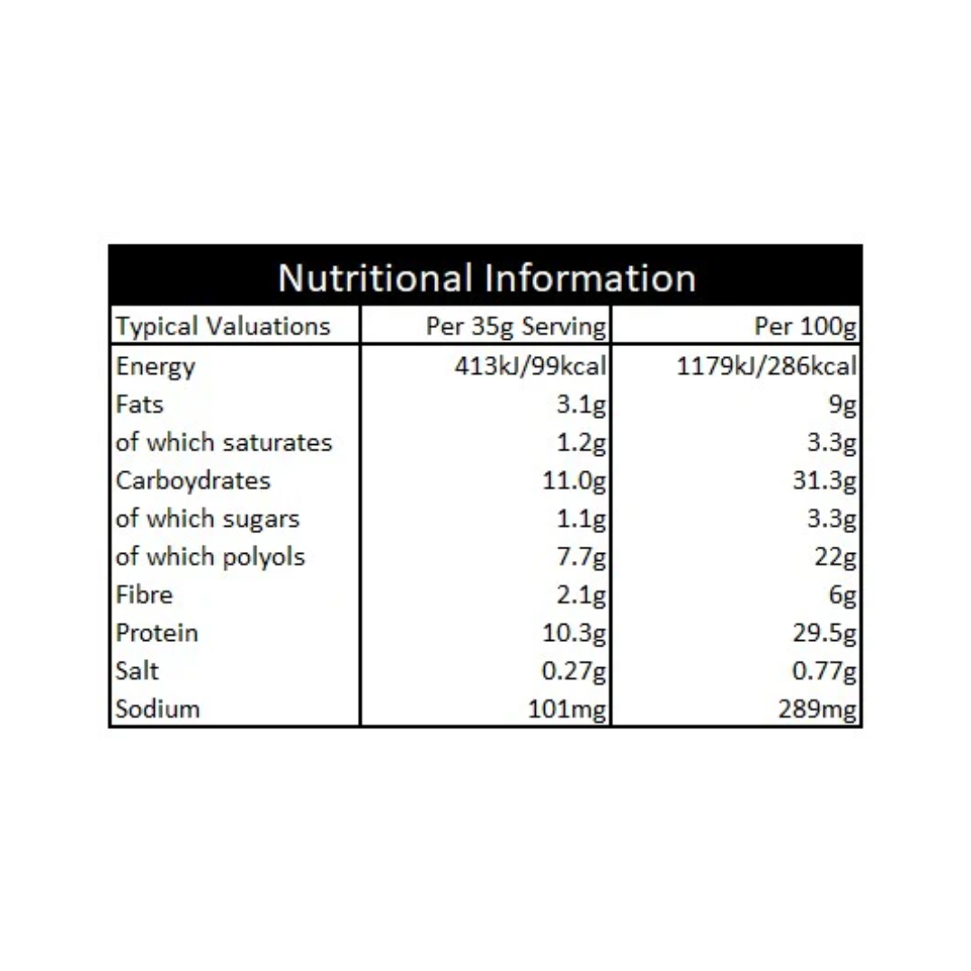 A tasty vegan protein bar with fruity raspberry caramel and creamy white chocolate flavor. Each 35g bar has 10g of plant protein, only 99 calories, and is low in sugar—perfect for a healthy snack.